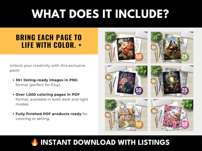 Bring nature to life with this exclusive bundle of 1,000+ garden-themed coloring pages β perfect for adults, kids, and resellers! With Full MRR Rights, you can sell, customize, and brand these pages on Etsy, Amazon KDP, or your own store.