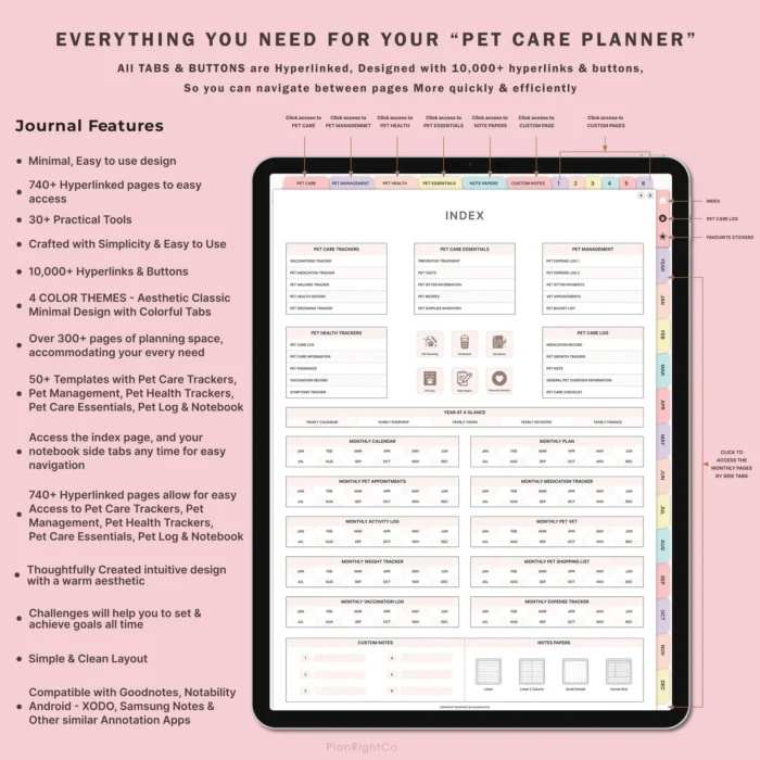 βœ” Yearly & Monthly calendars, vet & medication trackers
